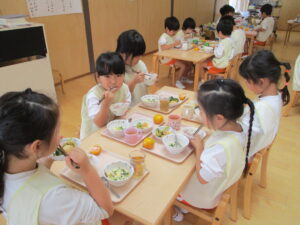 今日の給食はお祝いのお赤飯を